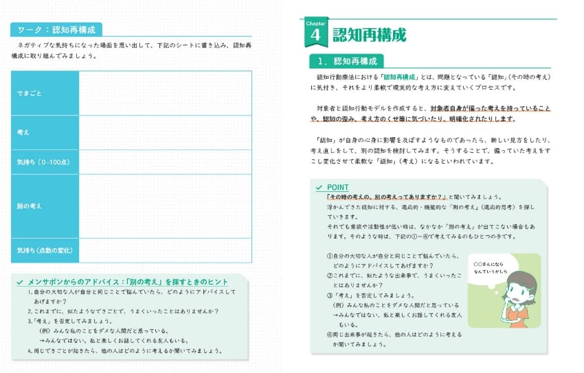 認知行動モデルに沿って具体的な場面を一緒に振り返ることで、利用者自身が気持ちや行動パターンに気付くきっかけになった。